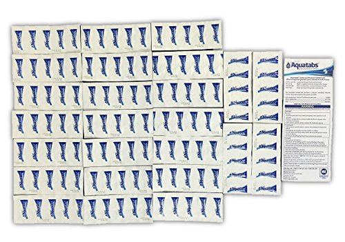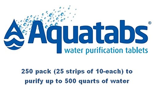 Deluxe pack of 250 tablets, enough to purify 500 quarts of water (25 strips of 10 each)