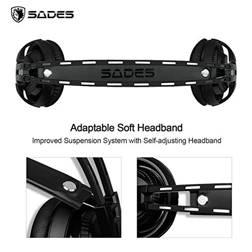 SADES R2 Virtual 7.1 Channel Surround Sound headphones with Retractable Mic USB PC Gaming Headset Stereo Professional headsets Noise-Canceling Volume Control LED Light(Black)