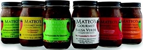 Mateo's Gourmet Salsa Sampler 16oz Glass Jar (Variety Pack of 6 Different Flavors)