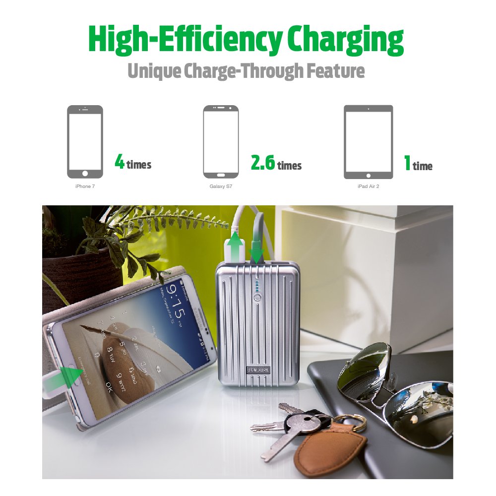 - Unique Pass Through function allows you to charge other devices simultaneously while the mobile battery is charging.