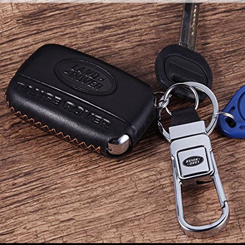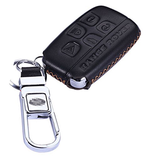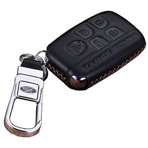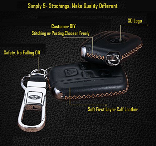 KMT Calfskin Genuine Leather Car Remote Key Fob Case Holder Cover Shell fit Land Rover/Discovery 4/lr4/Range Rover/Evoque Smart Key (Pack of 1) Black+Gold Stitching