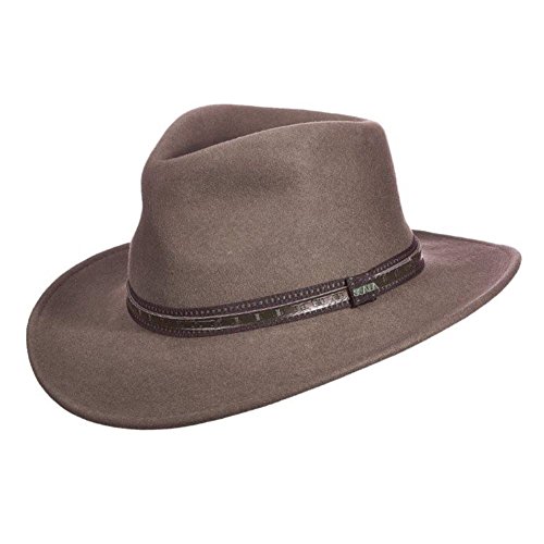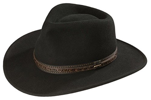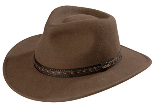 Enjoy the affordability and packable ease of our Aussie styled outback hat from Scala. It's the perfect hat for the traveling cowboy Comfort fit fabric sweatband. 4" pinch front crease crown and 3" hat brim. Cowboy hat crown height and brim width may vary slightly.Feature