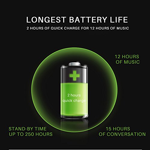 ★LONGEST BATTERY LIFE : 2 hours of quick charge for 12 hours of music or 15 hours of conversation, or the stand-by time up to 250 hours.