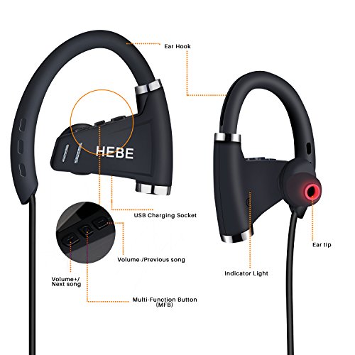 Bluetooth Headphones V4.1 Stereo HEBE H9 Wireless Sport Headsets IPX5 Water Resistant Sweatproof HD Earbuds For Gym Running Workout 12 Hour Battery Microphone Volume Control Noise Cancelling Earphones