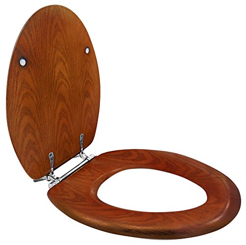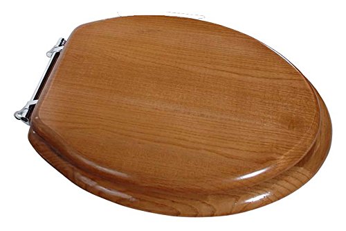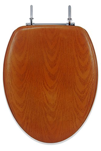 LDR 050 1750CP Elongated Molded Wood Toilet Seat with Chrome Hinges Oak Style Finish