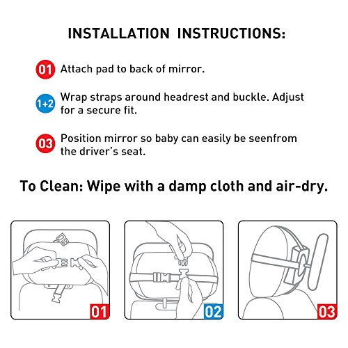 Keep an eye on your little ones in the back seat, safely and conveniently Like any parent, you like to check on your kids to ensure they're safe, as well as letting them know you're there for them. Especially on long trips in the car, your kids can get restless because they need to be reassured you're paying attention to them, but you need to keep your eyes on the road. Problem solved! Strap the Nuby adjustable mirror to the rear seat headrest, and enjoy a wide-angle view of your little ones in their car seats. The adjustable attachment straps allow the mirror to securely attach to most vehicle head restraints. Its pivoting base let you set it to the exact angle to capture a good view of your baby. You'll be able to interact with your child without even needing to turn your head, keeping you both safe while driving. 0 |