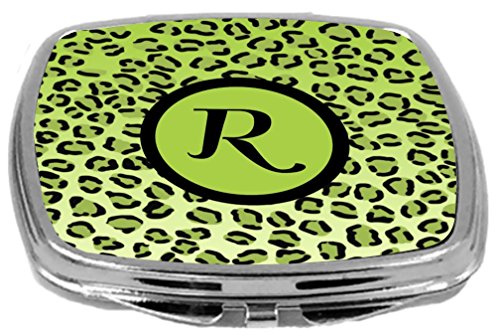 Rikki Knight Compact Mirror, Letter r Initial Lime Green Leopard Print