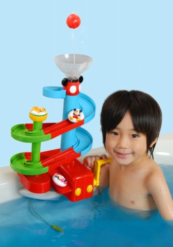 Mickey Mouse and Slider Play! Turn the handle and the fountain blows up the ball.