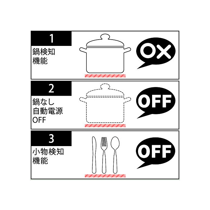 형상:바닥이 평탄한 냄비,휘가 3mm이하의 냄비(튀김 조리 때는 휘가 1mm이하의 냄비 사용)※IH조리기에서는,재질이나 크기에 의해 쓸만한 냄비와 사용할 수 없는 냄비가 있습니다.냄비는,재단법인「제품 안전 협회」의 SG마크가 있는 냄비를 추천 합니다.