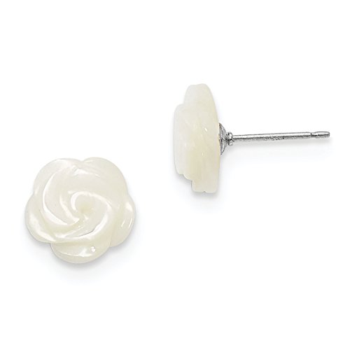 ICECARATS DESIGNER JEWELRY 925 STERLING SILVER 10MM WHITE MOTHER OF PEARL FLOWER POST STUD STUD BALL BUTTON STUD EARRINGS