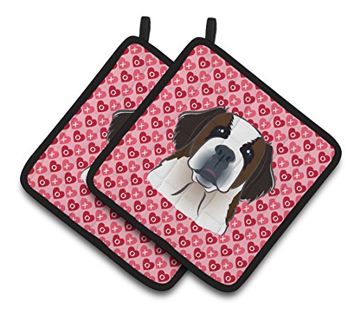 Caroline's Treasures Saint Bernard Hearts Pair of Pot Holders, 7.5HX7.5W, Multicolor