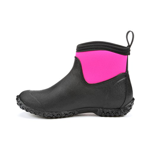 Studio : Muck Boot Publisher : Muck Boot Binding : Apparel Product Description With a low-profile height, Muckster ll Series Women's Rubber Ankle Boots keep you protected from mud and puddles while you work in the garden or around the house. Crafted from CR Flex-Foam neoprene, these 100% waterproof rubber boots are cushioned for long hours outdoors and adapt to the movements and contours of your feet while you walk, bend and crouch. The high traction outsole makes excellent contact with slick surfaces and it also self-cleans to keep out dirt and debris for better grip. Designed with an Airmesh lining, these rubber ankle boots are breathable for improved comfort in warm weather. These versatile women's rubber boots are a great choice for gardening, walking the dog and running errands. 0