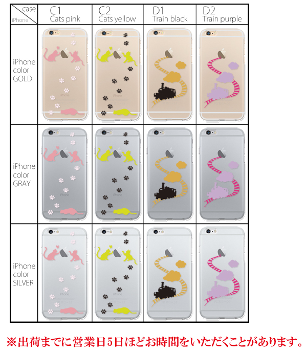 ねこ(ピンク、イエロー)、汽車(ブラック、パープル)からお選びいただけます。