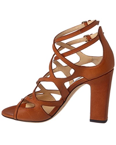 Studio : Jimmy Choo Publisher : Jimmy Choo Binding : Apparel Product Description Please note: Size selections are European. For US conversions, please reference size chart.. Made in Italy. Color/material: tan leather. Design details: gold-tone hardware. Adjustable ankle strap with buckle closure. Lightly padded leather insole. Smooth leather sole. 3.75in heel. Please note: All measurements are approximate and were taken from a size 37; slight variations may occur. 0