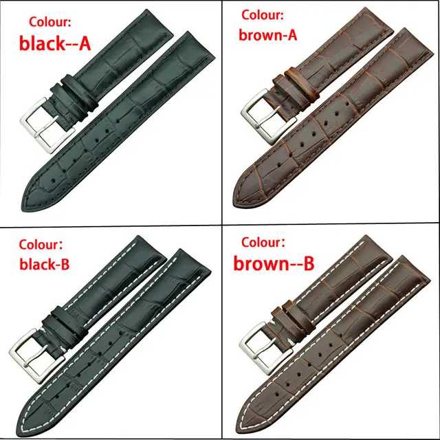 [해외]Maikes 좋은 품질 정품 가죽 시계 스트랩 밴드 악어 곡물 팔찌 벨트 갈색 시계 스테인레스 스틸 핀