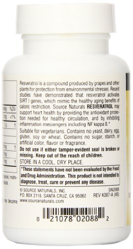 (Source Naturals)/Vitamins Dietary Supplements/Supplements/DIRECT FROM USA/Source Naturals Resveratrol 40mg, Super Nutrient Support for Heart and Healthy Aging, 60 Vegeta...