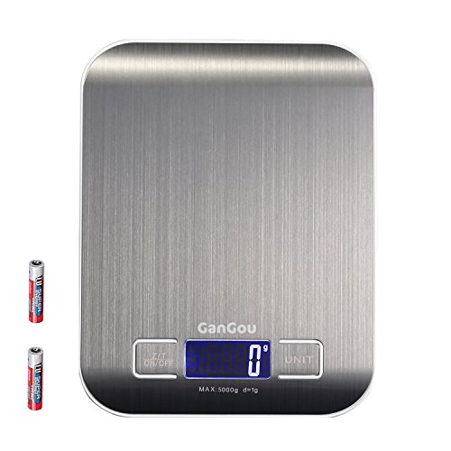 GanGou Multifunction Digital Kitchen Scales,Ultra Slim,Multiple Unit Conversion,Smooth Silver Stainless Steel Surface, Perfect for Kitchen Cooking and Coffee 11 lb/5kg