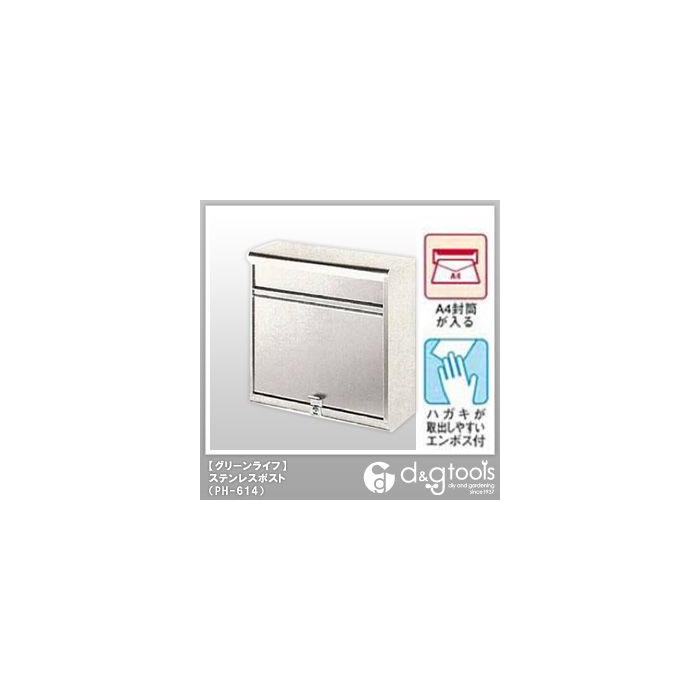 원본상품명:グリ?ンライフ 家庭用 ステンレスポスト 郵便ポスト(薄型スリムタイプ) (PH-614) Greenlife 郵便ポスト宅配ボックス 壁付け郵便ポスト