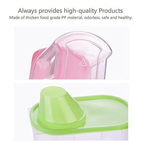 ❤ Humanized Design - You can see the stuffs inside at a glance through the clear material; Big spout lid with a measuring cup; Comfortable grip feeling and good seal.