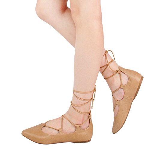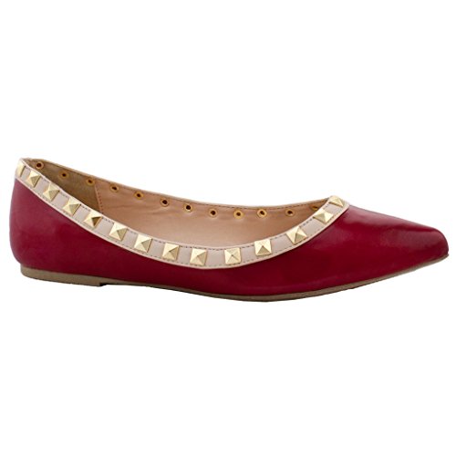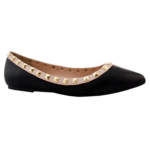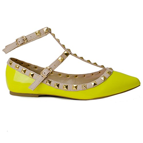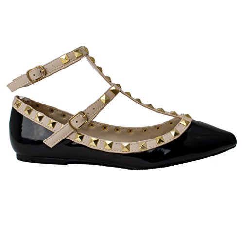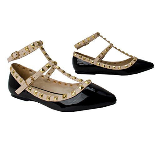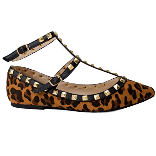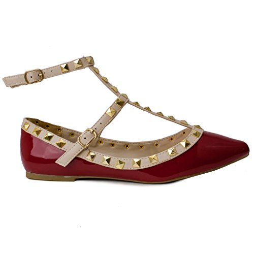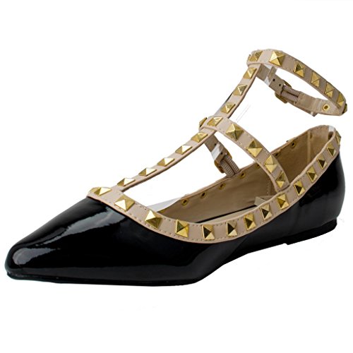 Wild Diva Pippa-35 New Women Pyramid Studded Ankle T-Strap Sandal Ballet Pointy Toe Flat 10 US