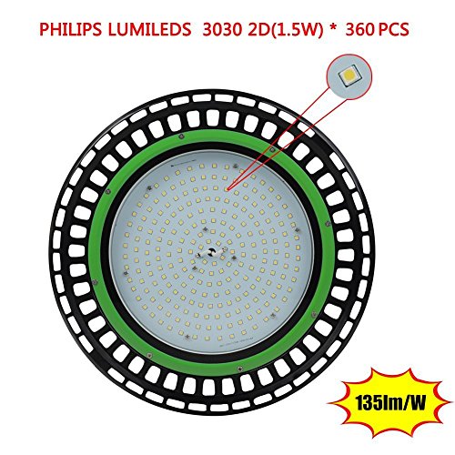 - Better Design: New "UFO Style" is the latest in LED technology. Smaller, longer, lasting and more efficient. Only 12.9 inches(320mm)in diameter. The new design is more compact without sacrificing performance.150W Philips Luxeon 3030 LED modules produce 135 Lumens per watt, save even more by using a lower watt unit. Premium grade components make this an industrial grade and commercial grade LED High Bay or Warehouse Light