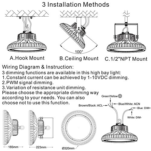- Easy Installation: Hook & Bracket Mount Design make easier installation. Simple replacement for existing lights or for new installation. M10 threads for alternate install. Input Voltage AC100-277V 50/60Hz. Product Weight only 11.96LB / 5.3KG for easy handing.Wiring is standard(Brown is hot and goes to black, blue is negative and goes to white, Yellow/Green stripe is ground and goes to green)