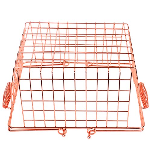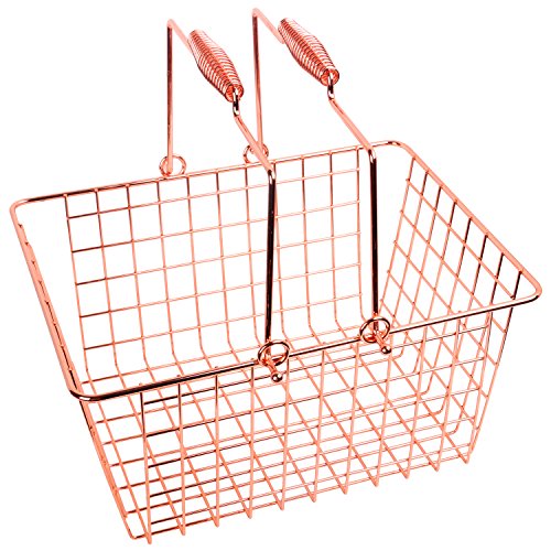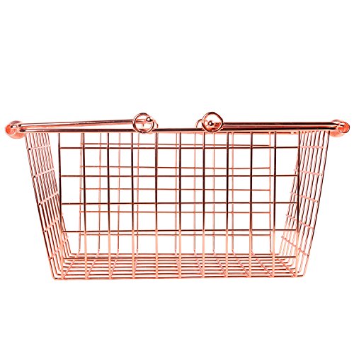 Kufox Multipurpose Glossy Rose Golden Plated Metal Basket,Useful Bling Bling Wire Food Storage Tray With Comfortable Handles,Medium,Idea For Kitchen Supplies, Pantry, Party Organizer, Rose Gold