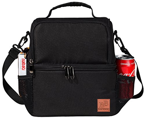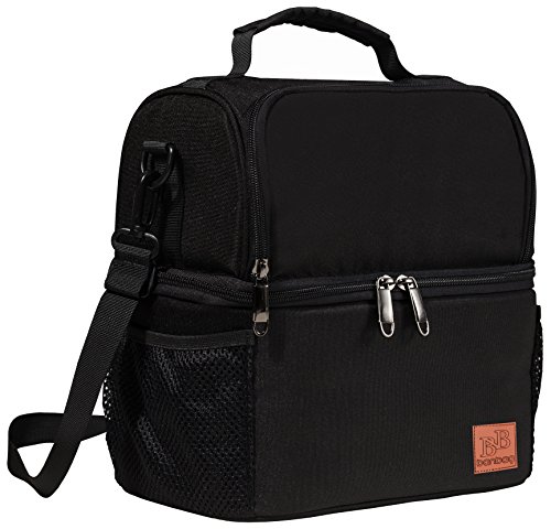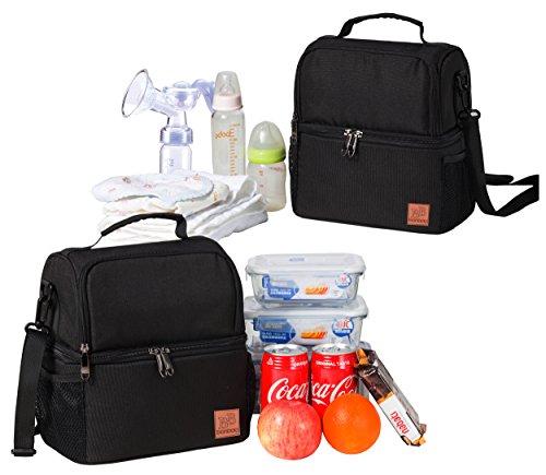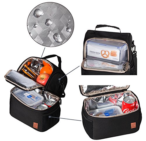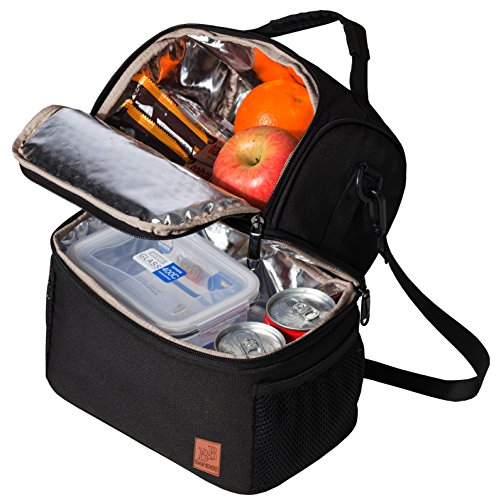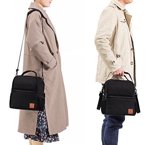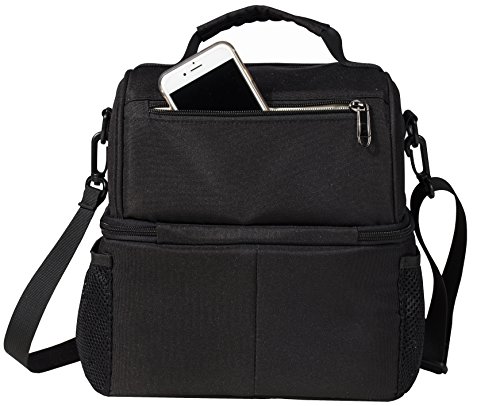 Lunch Box with Large Double Deck Insulated Cooler Tote Drink & Lunch Bag for Men, Women, Adult, Children(Black)