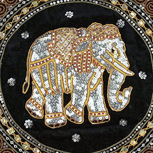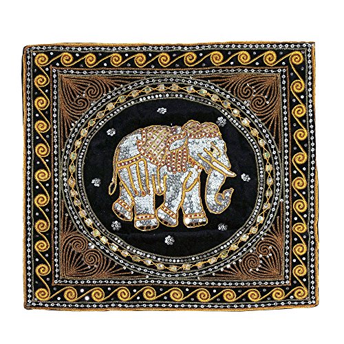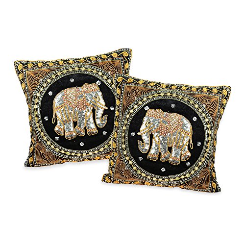 Thai Elephant Embroidered Velvet Throw Pillow Cases - Set of 2 - Black