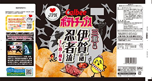 原材料:じゃがいも(遺伝子組換えでない)、植物油、食塩、コーンスターチ、ぶどう糖、粉末しょうゆ(小麦・大豆を含む)、デキストリン、酵母エキスパウダー、たんぱく加水分解物、梅肉パウダー、ビーフパウダー、粉末植物油脂/調味料(アミノ酸等)、酸味料、香料(ごま・豚肉・ゼラチンを含む)、着色料(紅麹、カラメル)、香辛料抽出物