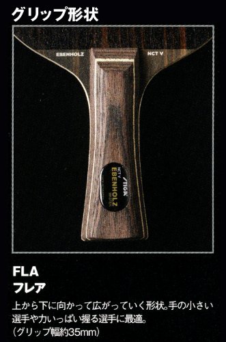 Grip:FLA(플레어)위로부터 아래에 퍼져 가는 형상.손이 어린 선수나 역가득 쥐는 선수에게 최적(그립폭 약35mm)