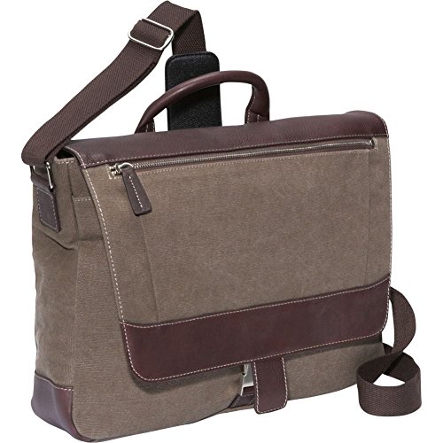 Binding : Apparel Product Description This rugged, stone-wash 20 oz canvas messenger is trimmed with rich Columbia leather and surrounded by a creamy contrast stitch. Ultra durable to withstand heavy use, it features a padded sleeve for a 15.4" computer and a piggyback sleeve for an iPad or tablet inside the main compartment. An organizer pocket holds business accessories inside the front panel compartment. Additionally, there is a zip pocket inside, and an open pocket in the back with a strap that allows this case to fit over a luggage handle. A sleek metal buckle at the bottom neatly secures the flap, and a soft-grip leather handle finish this fine piece. 0