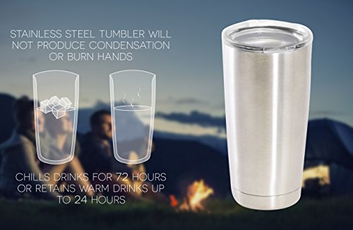 -. Feature : SET OF TWO 20 OZ TUMBLERS: ESKIMO-INSULATED DOUBLE WALLED TECHNOLOGY: Eskimo's Premium Vacuum Insulated, Double Walled Design Traps The Cold Inside For Up To 72 Hours. / GUARANTEED TO KEEP ICE FROZEN FOR UP TO 72 HOURS: Take Eskimo's Stainless Steel Travel Tumbler Everywhere You Go & Never Suffer Through Drinking A Warm Beverage Again! Great For Camping, Parties, Athletic Events, Canoeing, Biking, Running, Hiking, & Any Other Adventure You Need To Stay Hydrated Doing! / "COLD AS HELL" GUARANTEE: Buy With Confidence, If You Aren't Completely Satisfied With Eskimo's Stainless Steel, Vacuum Insulated, Double Walled Design Then Simply Return Your Favorite Tumbler Within the First 30 Days for A FULL REFUND, No Questions Asked. / ESKILOCK LID: Keeps Your Beverage Cold As Hell, While Preventing Your Favorite Beverage From Spilling With Their Vacuum Sealed, Double Walled Insulating Lid. / STAINLESS STEEL PERSONAL DRINK COOLER: Stop Drinking Out of An Ordinary Glass & Start Drinking Straight From A Cooler! Eskimo's Vacuum Insulated, Double Wall EskiTech Optimizes Your Drink's Temperature. Keeping Your Beverages Colder Than Ice Or Your Coffee, Teas, & Soups Hot For Over 12 Hours!