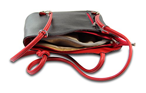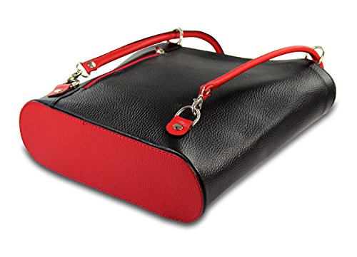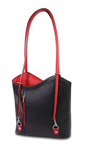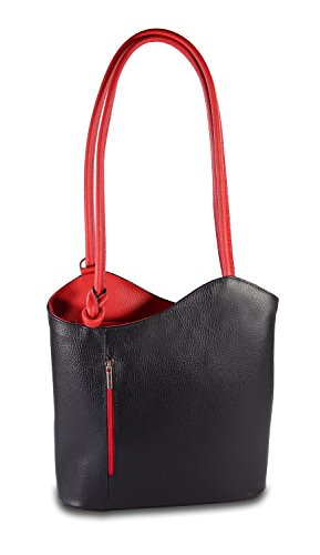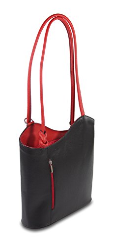 IO.IO.MIO Borsetta per le Icone IO.IO.MIO Schultertasche Rucksack 2in1 Handtasche schwarz rot Leder , 27-32 x 30 x 9 cm (B x H x T)