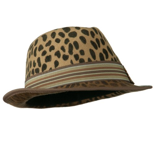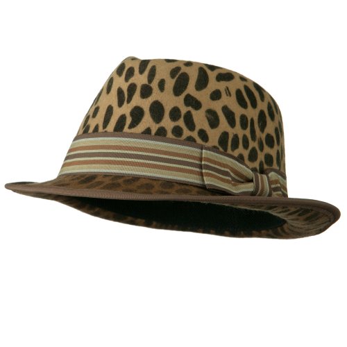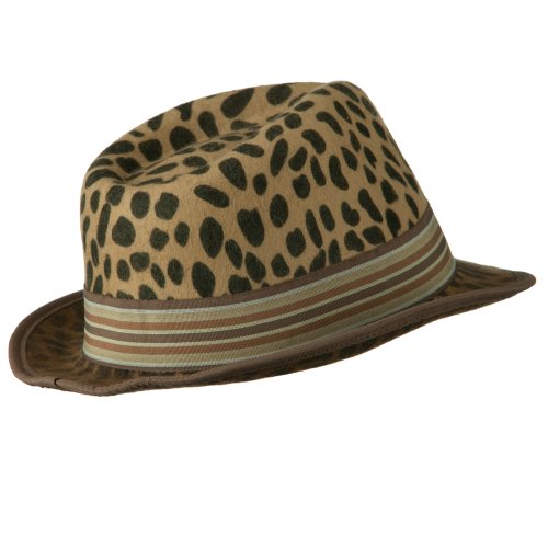 Binding : Apparel Product Description Our Woman's Animal Print Striped Ribbon Fedora Hat is made with 100% wool and is soft, lightweight, and warm. The hat is a classic fedora with an upturned brim and pinched crown. The animal print adds a slightly wild yet stylish factor to the hat and is definitely an eye-catching hat. A striped ribbon circles the crown of the hat and is finished off with a bow. The inside of the crown is lined with an elastic band to allow for a tight fit. We offer different kinds of animal prints in this design and we're sure you'll be able to find one to your liking so take a look at them all! Hand washable. Imported. Available in different styles and colors. 0