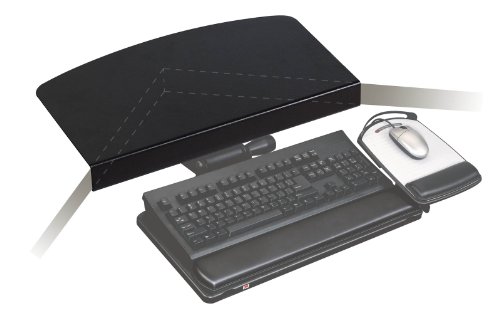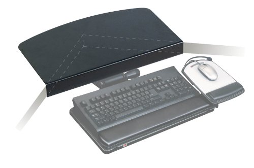 -. Feature : Turns a 90 degree corner workstation into a bridged corner so a keyboard tray can be mounted in the corner / 17" wide front edge is compatible with all 3M keyboard trays with track lengths of 21.75 inch or greater / Fits workstations up to 1.5" thick