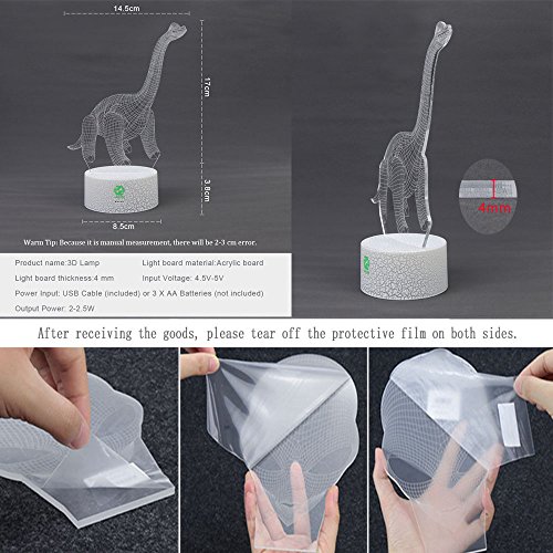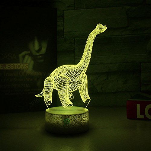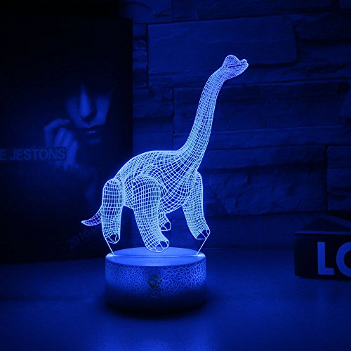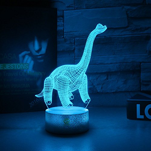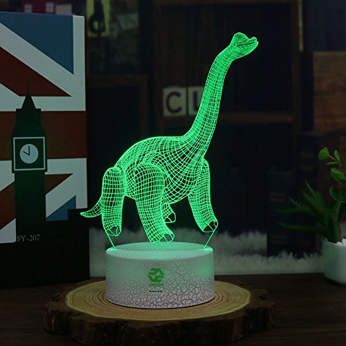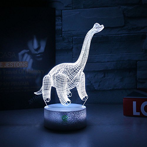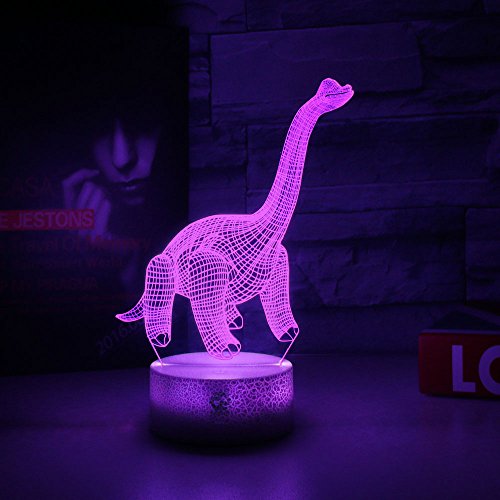 - 3d night lights for kids: A unique birthday gift for girls that everyone will love. Light up dinasour toy is pefect gift for ADULTS, KIDS and BABIES who comes alive in the dark. 3D optical illusion which is with soft 7 LED light spreads light through small acrylic panel and it is not so dazzling, 7 color changing and plug in the white carckle base.