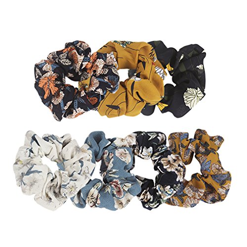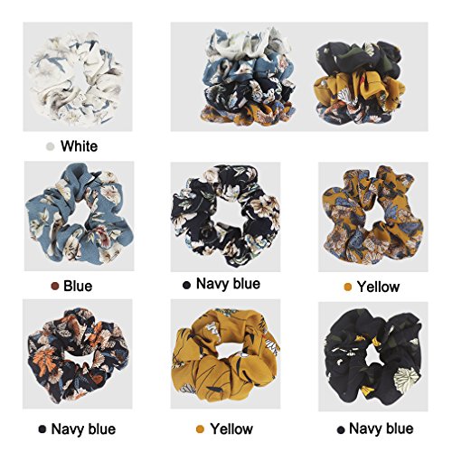 Ondder Large Chiffon Flower Hair Scrunchies Hair Bow Chiffon Ponytail Holder Bobbles Elastic Colorful Scrunchy Hair Bands Ties, 7 Pieces