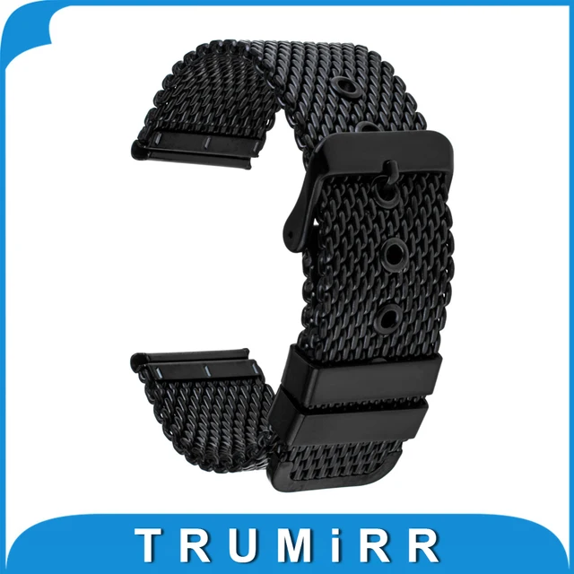 | [해외] 20 미리메터 Milanese 시계 밴드 + 도구 조약돌 시간 라운드 20 미리메터 스테인레스 스틸 손목 스트랩 손목 벨트 팔찌 블랙 실버 |