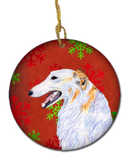 Caroline's Treasures SS4682-CO1 Borzoi Red Snowflakes Holiday Christmas Ceramic Ornament, Multicolor