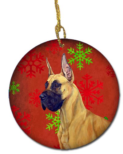 Caroline's Treasures LH9310-CO1 Great Dane Red Snowflake Holiday Christmas Ceramic Ornament, Multicolor