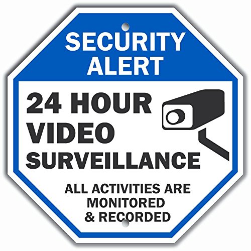 Video Surveillance Sign, "Security Alert 24 Hour Video Surveillance All Activities are Monitored" 10"X10" Aluminum Stop Sign