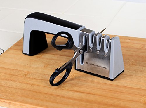 Kitchen Knife Sharpener and Sicssors Sharpening System, 3 Stages Sharpening Tools, 4 In 1 Tungsten Steel & Diamond Coated & Fine Ceramic Blade Sharpener.