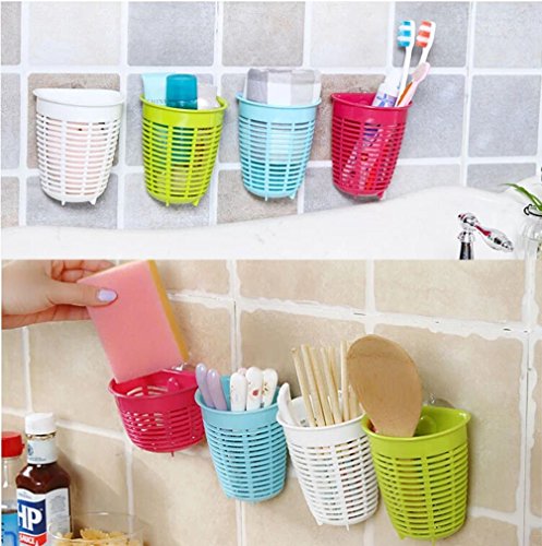 Chris-Wang Suction Cup Sink Sponge/Soap Water Draining Holder/Organizer/Hollow Out Basket, Set of 2Pcs(Large + Small), White