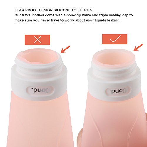 - Leak proof design silicone toiletries: 100% BPA free food grade silicone bottle ( FDA Approved ) has been created not to leak when travelling. Can also be used for Syrups, Ketchups, Salad Dressing, etc(Except the spray bottle). Perfect for Traveling, Outdoors, at the Gym, and much more Situations