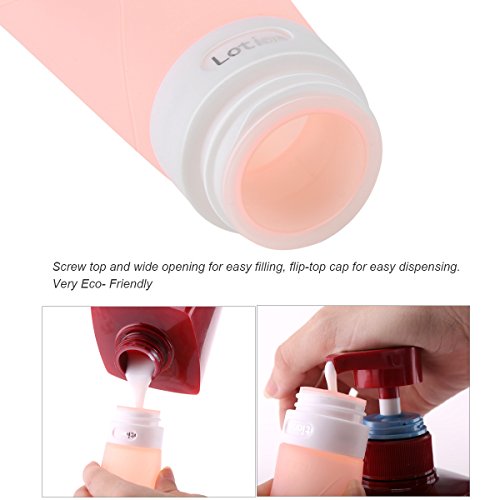 - Refillable & squeezable: Easy to squeeze, easy to refill. - Soft and pliable silicone travel containers - Screw top and wide opening for easy filling and cleaning, flip-top cap for easy dispensing,very Eco- Friendly
