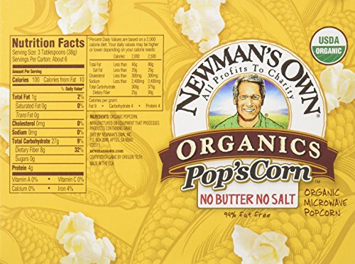 For the past 20 years, Newman's Own Organics has been offering Great Tasting Products That Happen to Be Organic. You can feel good about having our microwave popcorn as a snack as it contains no hydrogenated oils or trans fatty acids. Our organic popcorn offers great flavor without the use of artificial flavors, colors or preservatives common in conventional popcorn. Through the sale of it's products, Newman's Own Organics generates money for the Newman's Own Foundation to donate to a wide variety of charitable organizations.Feature