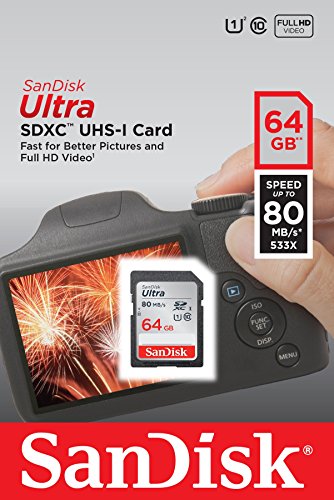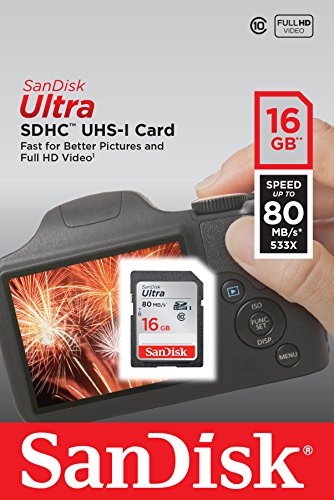 Twice as fast as ordinary SDHC and SDXC cards to take better pictures and Full HD videos with your compact to mid-range point and shoot cameras and camcorders. With SanDisk Ultra UHS-I cards you'll benefit from faster downloads, high capacity, and better performance to capture and store high quality pictures and Full HD video. Take advantage of ultra-fast read speeds of up to 80MB/s to save time moving photos and videos from the card to your computer. SanDisk Ultra UHS-I cards are water proof, temperature proof, X-ray proof, shock proof, compatible with SDHC and SDXC digital devices, and come with a 10-year limited warranty.Feature