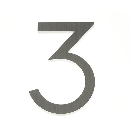-. Title : Modern House Numbers Brushed Aluminum Modern Font Number Three "3" 4 inch