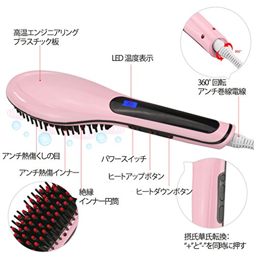 원본상품명: 【電子版日本語明書付き】 ヘア ストレト アイロン ブラシ 電防止 セラミック ゼロダメジ デジタル マッサジ 疲れ解除 (ピンク)